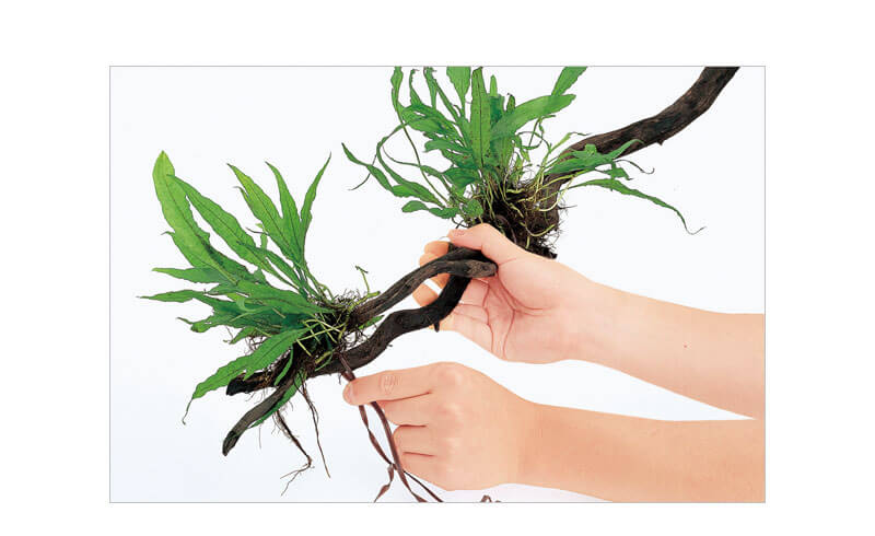 Wood Tight is a vinyl covered wire, temporarily fix ferns and Anubias until the plant spreads their roots on the driftwood. The brown wire is barely-noticeable in the aquarium layout. After fixing water plants, it is easy to cut and remove by scissors.